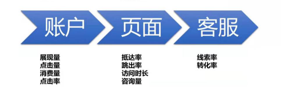 竞价推广本质是花钱买流量,主要流程可以分为3部分:账户——页面——转化(客服),这三个环节构成了我们竞价推广的闭环。