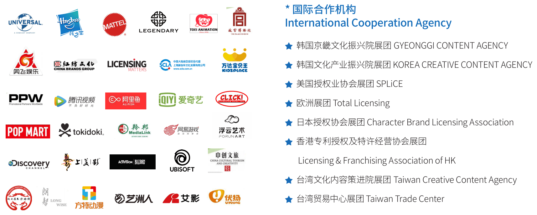 The largest professional licensing exhibition in Asia, ChinaLicensing Expo (CLE) is organized by the China Toy & JuvenileProducts Association (CTJPA). The headline-hitting three-day B2Blicensing networking event is widely recognized as the mosteffective network to promote brands, properties, characters anddesigns, to start and expand licensing businesses in China, byconnecting the world’s most influential property owners and high consumer-goods manufacturers, licensees and retailersthroughout the nation.