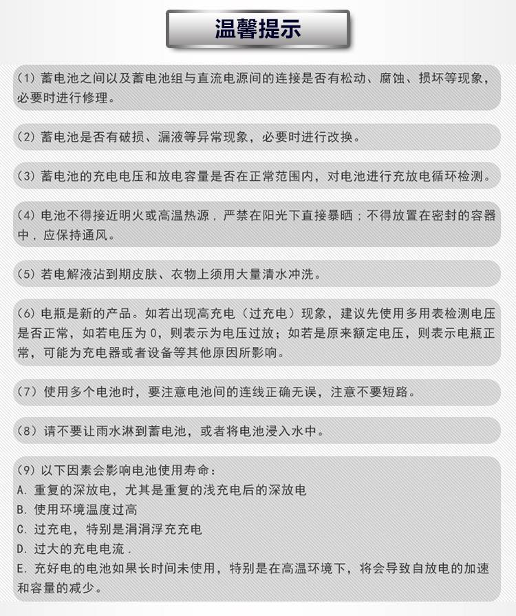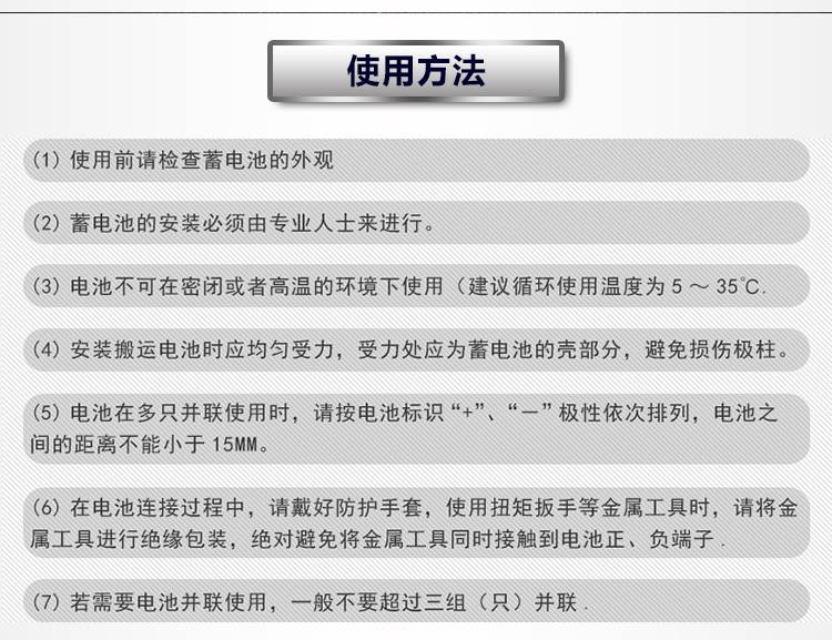 阀控式密封设计:电池内部装有安全阀,自动调节电池内部的气压,无需定期加水或维护,使用更加便捷。