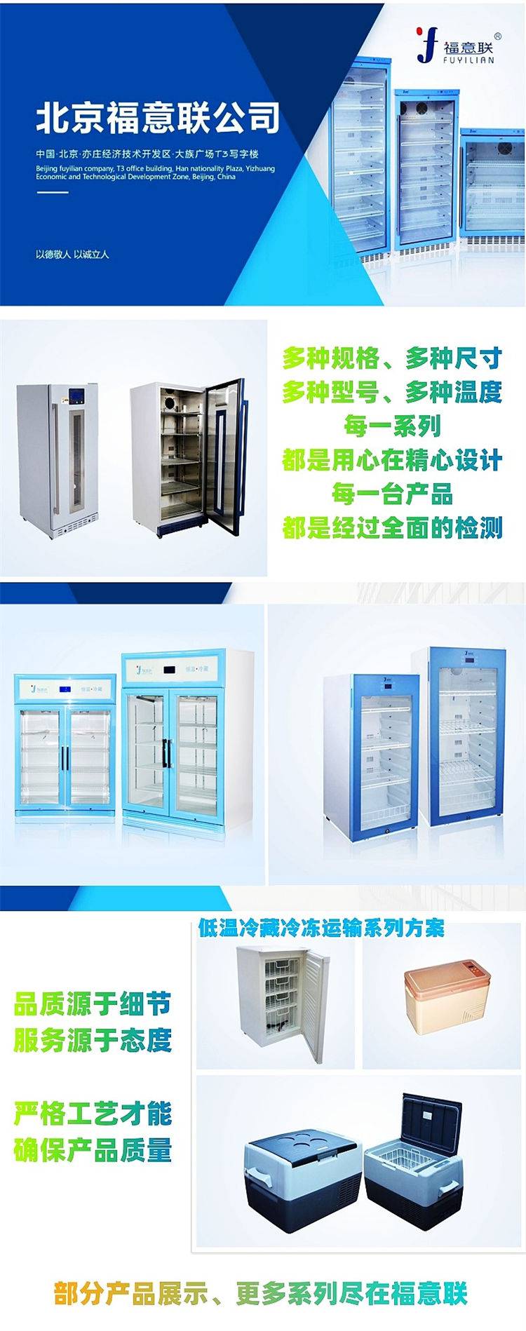 80L的医用冰箱,2~8℃,玻璃门公司说明:福意电器有限公司多年来在生物科技、医药卫生、农林畜牧、环境监测、科研教育等行业拥有众多用户,积累了丰富的技术服务经验,我们拥有雄厚经济基础,我们拥有充满活力的高素质服务人员,具有丰富业知识的技术团队和完善的服务团队