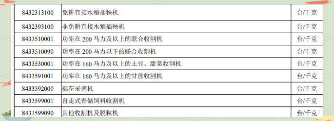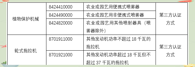 根据《海关总署关于发布强制性产品认证目录产品与2020年商品编号对应参考表的公告(市场监督管理总局+海关总署2020年第21号)》的规定,若进口的农业机械涉及以下HS编码,则需提供相应的3C证书。
