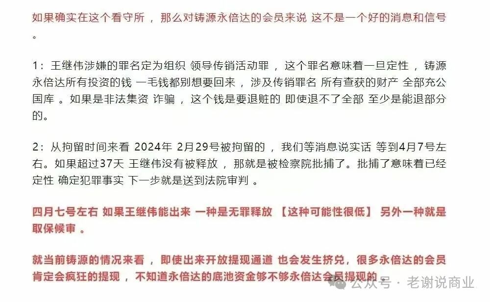 其实明眼人都看得懂:铸源有直销牌照,这是合规的,但永倍达的机制,根本不合规。要是真合规,王继伟现在早出来了,也不会换总经理 ——说白了,王继伟已经成了 “弃子”。