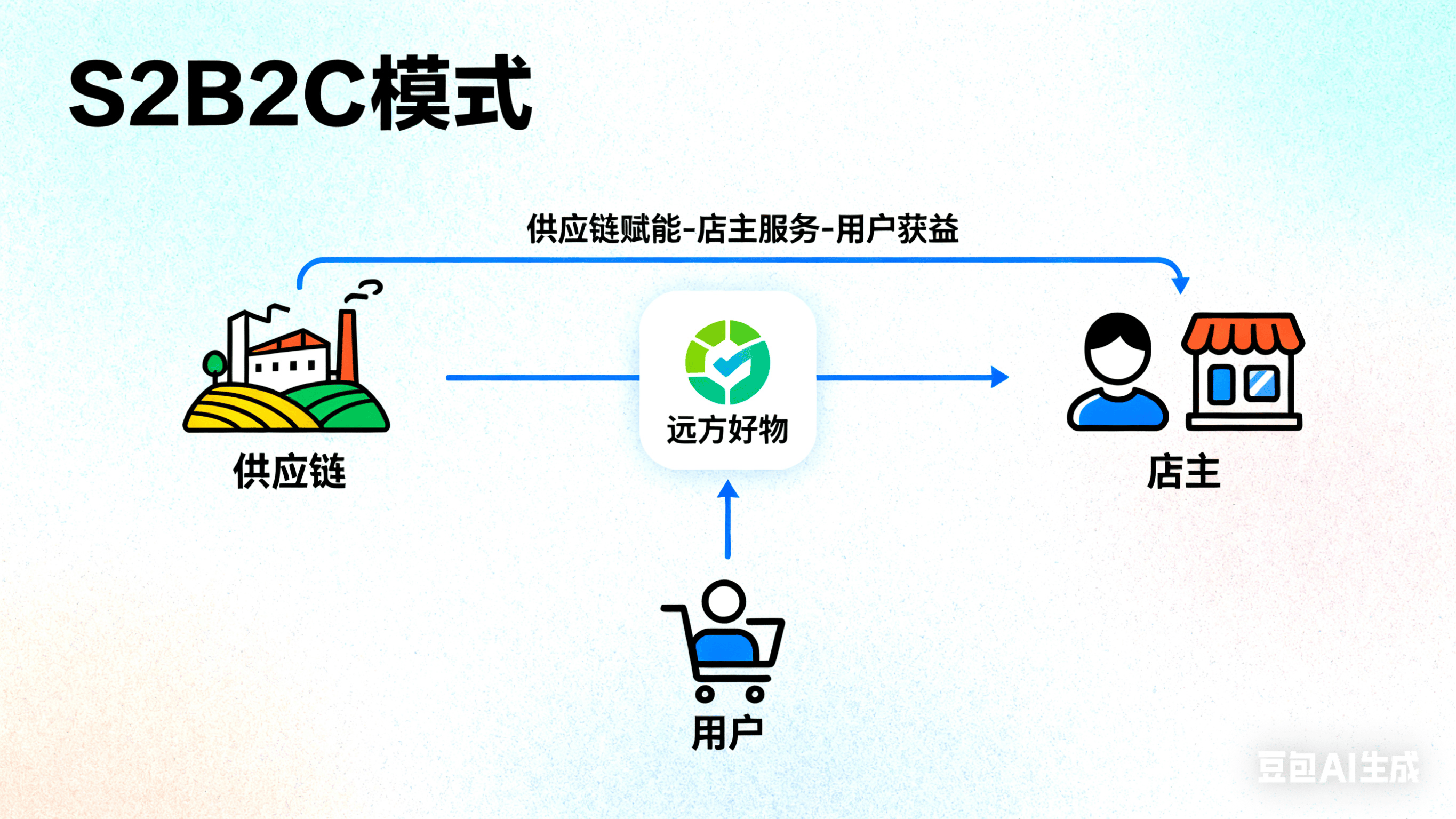 远方好物采用 S2B2C模式,将供应链(S)、店主(B)与用户(C)紧密连接,并结合会员制电商设计分层激励机制,充分激活网络效应。