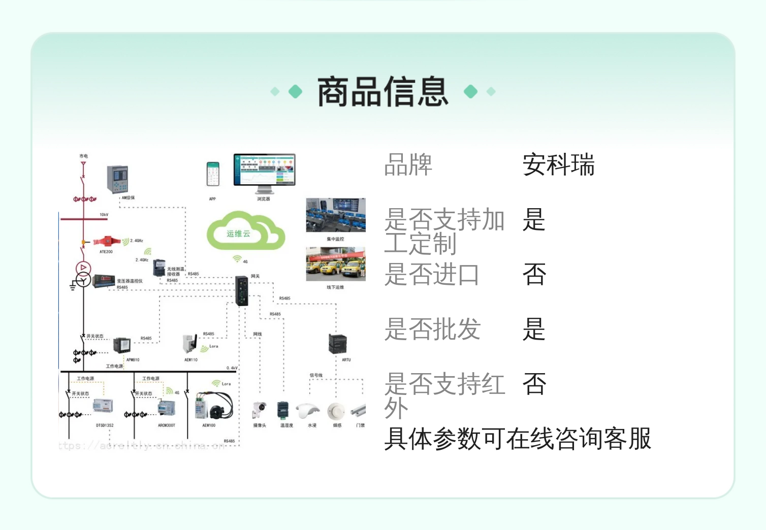 现代社会中,电力作为基础设施的重要组成部分,其稳定与安全直接影响着各行各业的运作。随着智能化技术的快速发展,无人值守电力监控系统逐渐成为电力管理的主流选择。安科瑞电气股份有限公司推出的AcrelCloud-1000型号远程电能监控系统,正是适应时代发展的需求,旨在为用户提供高效、便捷的电力监控解决方案。