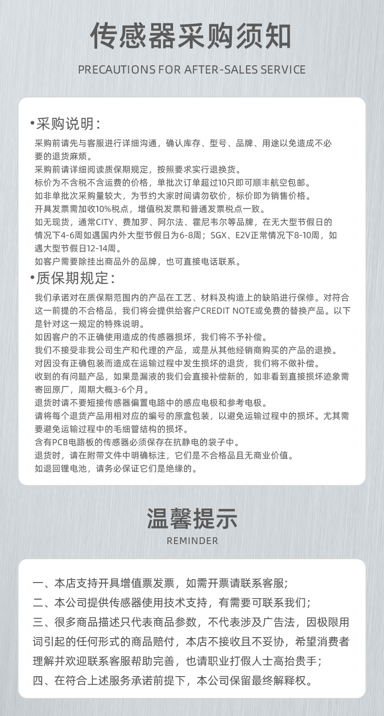 以750.00元的单价对比市场同类产品,city二氧化硫传感器的价格具有竞争力。费效比高体现在:
