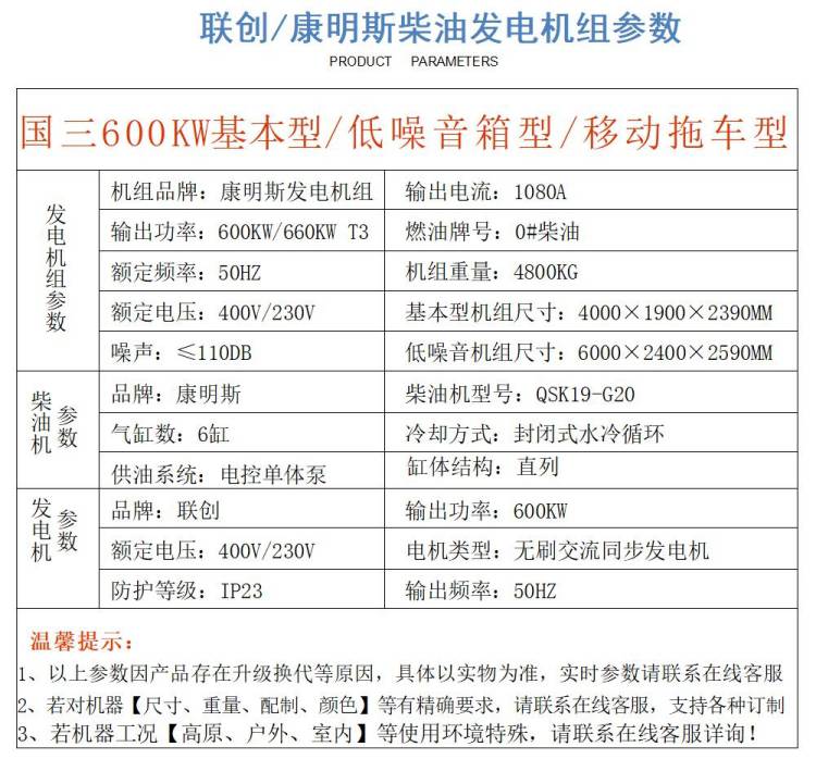 作为康明斯发电机组的优质供应商,宁波市鄞州联创机电有限公司不仅提供zhengpin600千瓦康明斯发电机组,价格合理(标准报价为346000.00元每台),在售后服务和技术支持上极具优势。