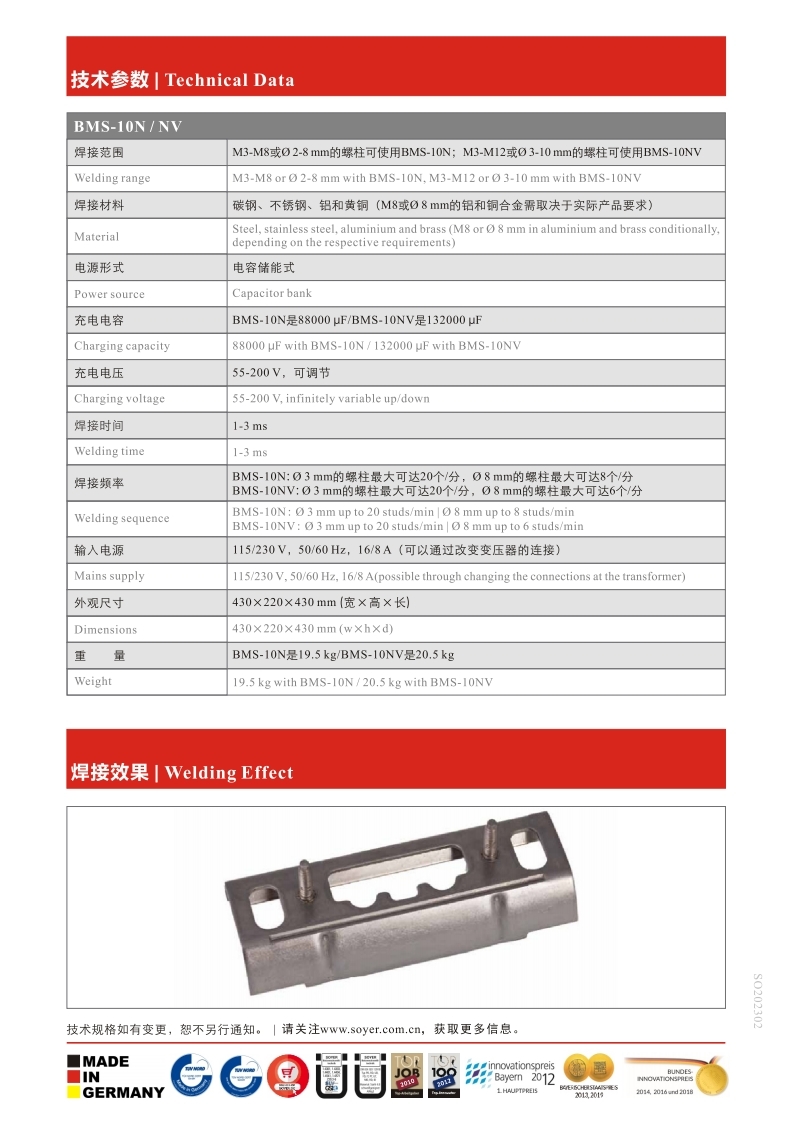 SOYER原装进口德国索亚电容式储能螺柱焊机BMS-10N