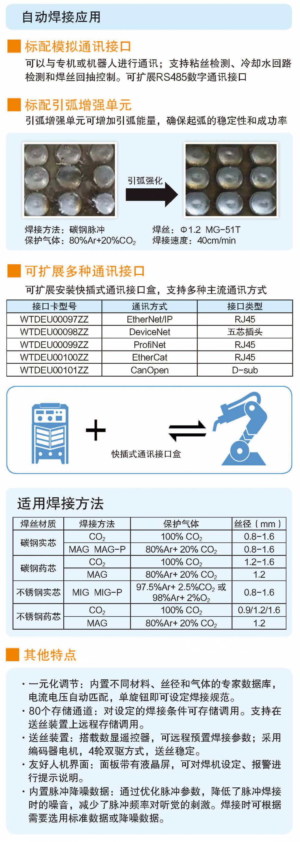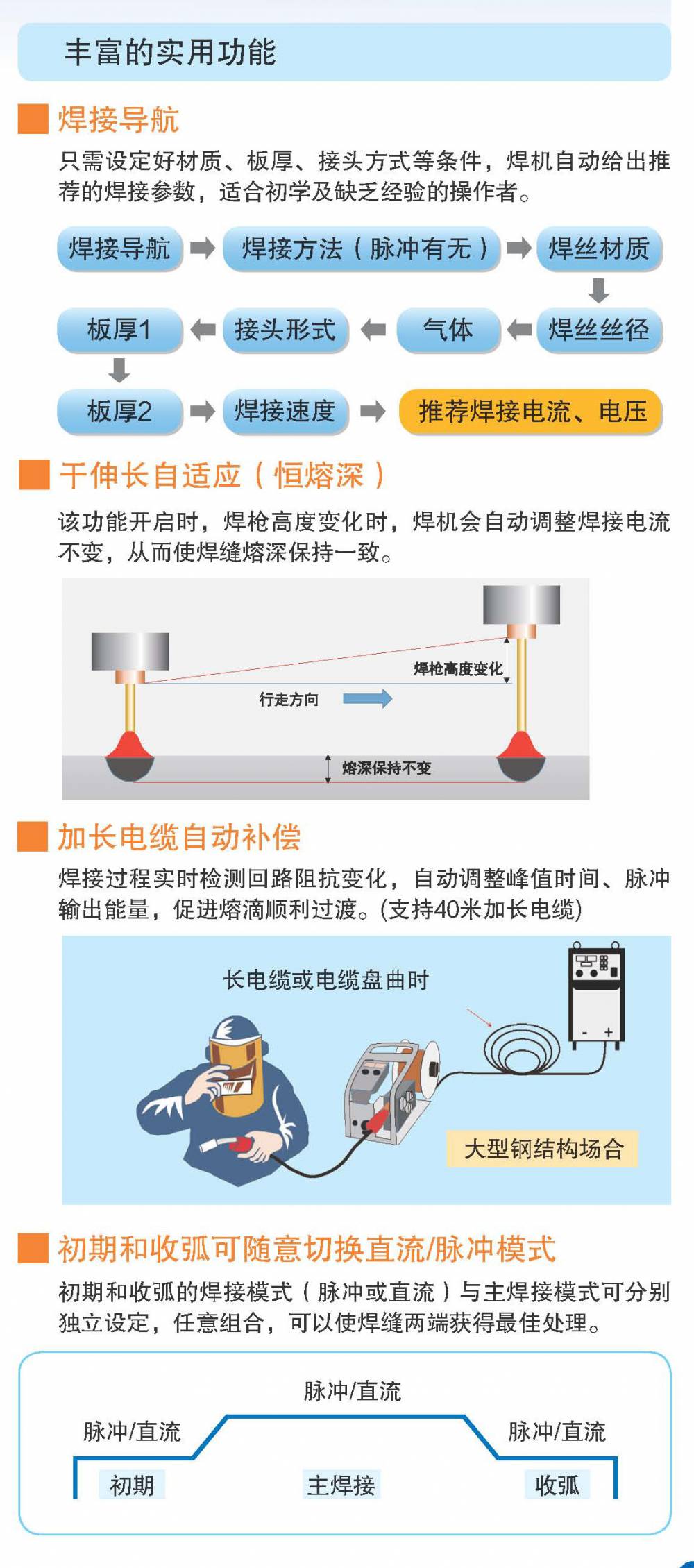 焊机搭载高品质的松下MIG气保焊机变频控制系统,使之在多种焊接环境下均表现出色,无论是薄板还是厚板焊接均能保持良好的焊接效果,适合不锈钢焊接需求较高的场合。