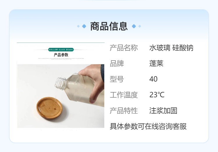 本文重点介绍的水玻璃产品模数为3.3,波美度40。模数3.3是指二氧化硅与氧化钠的摩尔比,适应性强,化学稳定性好。波美度40反映了水玻璃的浓度水平,含固量适中,利于运输和储存,方便现场调配。这样的水玻璃特别适合作为建筑领域的速凝剂使用,能够有效缩短砂浆和混凝土的硬化时间,提升施工效率。