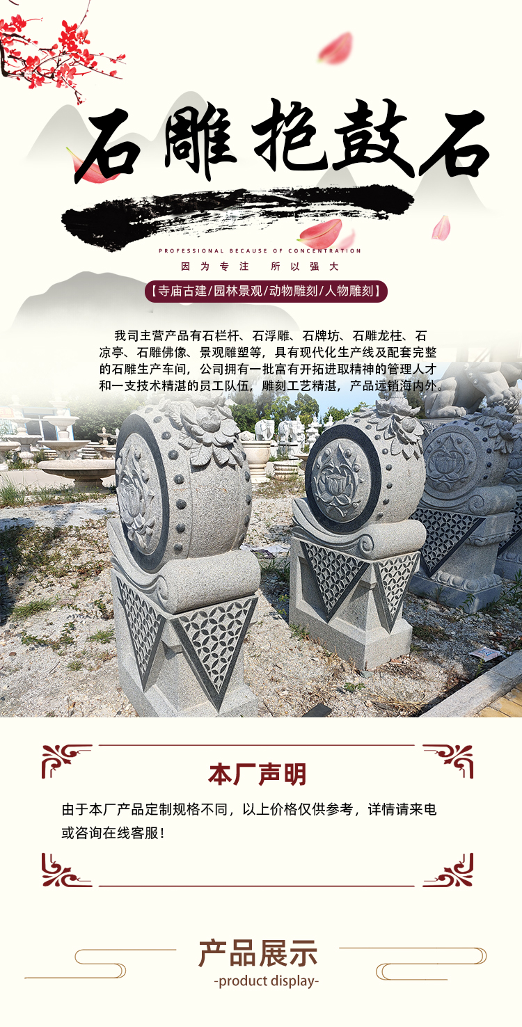 惠安县是福建省zhuming的石雕产地,拥有丰富的石材资源和悠久的石雕技艺,龙创石雕工艺有限公司深受当地传统文化的影响,融合现代工艺保持产品的艺术价值和实用性。