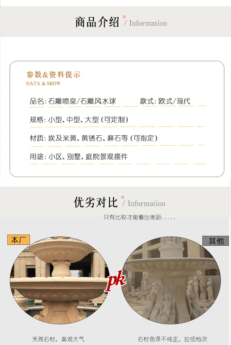 采用天然石材雕刻而成的石材水钵,不仅坚固耐用,具备很强的自然纹理和质感。惠安县龙创石雕工艺有限公司选用高品质石料,确保每一件石材叠水钵产品都拥有良好的耐候性和防腐性能。相较于其他材质,石材水钵更适合户外环境,无论风吹雨打,依旧保持稳定与美观,使用寿命长达数十年。