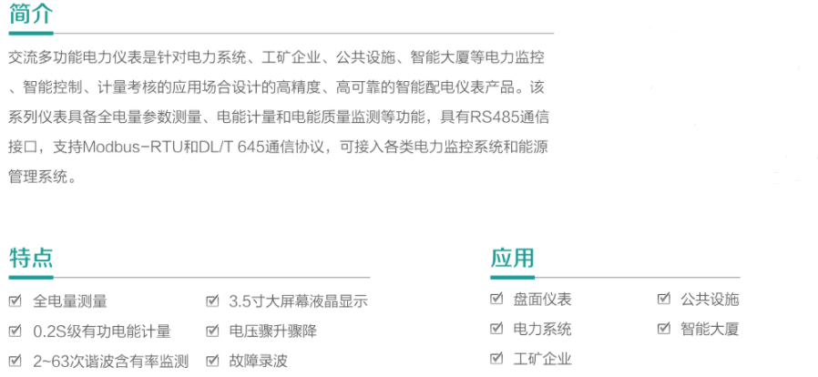 陕西航泰电力科技有限公司的PD194Z-2S4广泛应用于工业企业、电力变电站、商业建筑和公共设施等领域。在工业生产中,准确监控电能消耗是降低成本的重要手段,PD194Z-2S4能帮助企业合理安排用电,避免浪费。在变电站中,电力仪表数据对于调度决策至关重要,多功能的统计和分析功能也增强了系统的安全性。