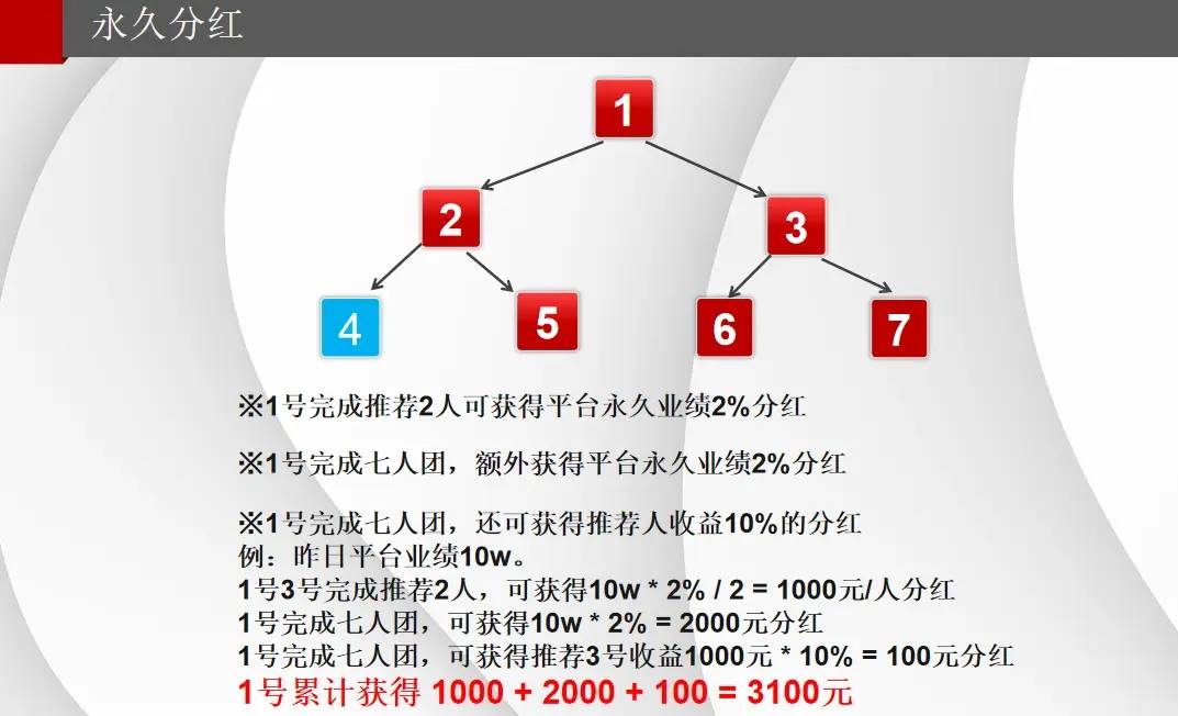 基础收益 :完成推荐两人任务后,用户可享平台业绩2%的yongjiu分红。