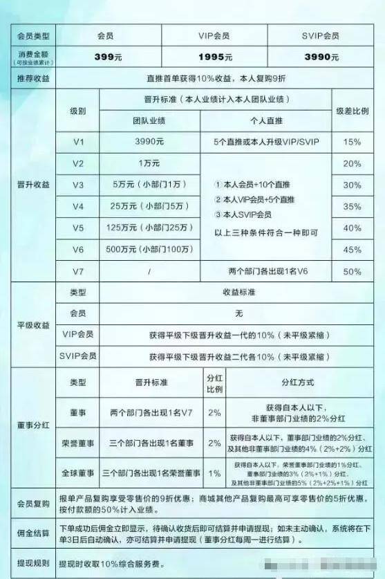 晋升收益 :升级后团队销售业绩的15%-50%可作为个人收入(如V7级可获团队50%收益);