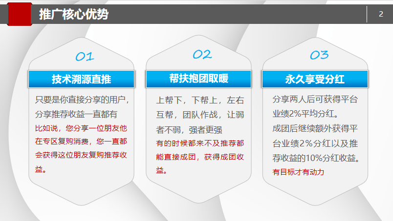 多收益:直推奖+ 成组奖 + 分红奖 + 领导奖,动力足;