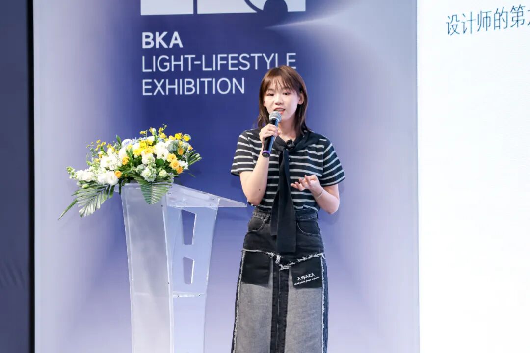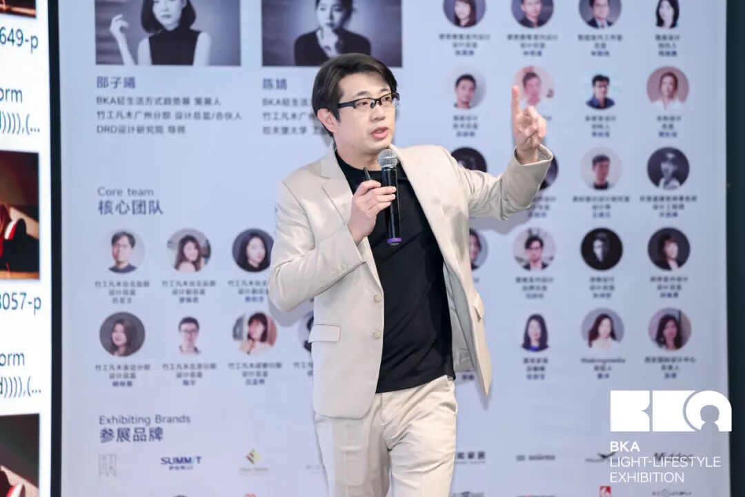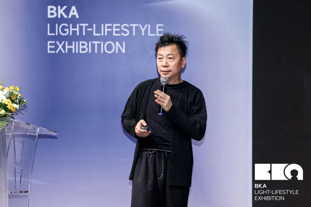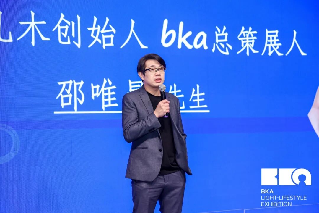 邵老师在演讲中阐释了在AI智能时代,“设计+新世代文化+轻生活方式”三位一体模式的演进范式,以及BKA平台如何辅助不同领域品牌对「AI轻生活」的美学构想。2025年第五届BK展展会延续了过往的叙事谱系,将家居、材料、艺术、潮玩、与智能科技融合于一个连贯的生活方式提案之中,再度携手品牌方,于「AI轻生活」的语境下共创出新时代的生活图鉴。