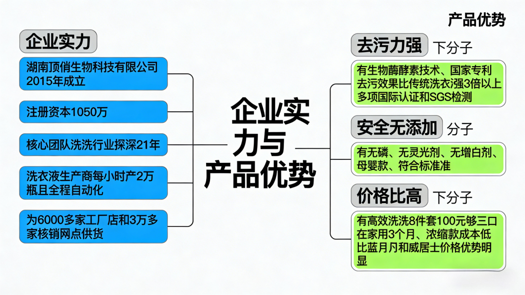 对消/费者:主打“便宜又好”。100块钱能买8瓶洗衣液,算下来一瓶才十几块,比超市里的便宜不少。而且宣传“生物酶酵素”、“无荧光剂”,听起来安全又。对于注重性价比的家庭来说,很有吸引力。