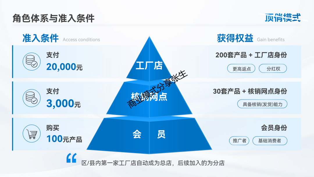 开工厂店(投2万元):除了更高的卖货立润和蓷荐奖励,还能从整个dai理区域的销售额里抽成,未来还可能画一个“分公司股权”的大饼。