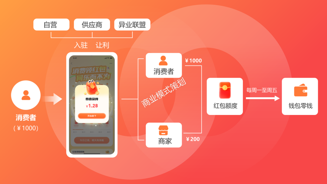 激励:“锁定”在本店首次消/费的顾客。此后,该顾客在平台其他任何店消/ 费,原店都能获得其消/ 费额约1.2%的“跨界纷润”。