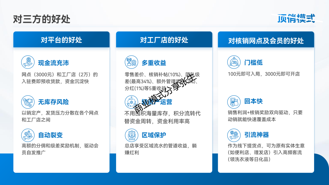 干啥:投入2万元,能拿到200套货,关键是在一个区或县里,你有经营的资格。除了卖货赚差价,还能根据整个区域的业绩拿提成,做得好甚至有机会参与纷公司的收益。