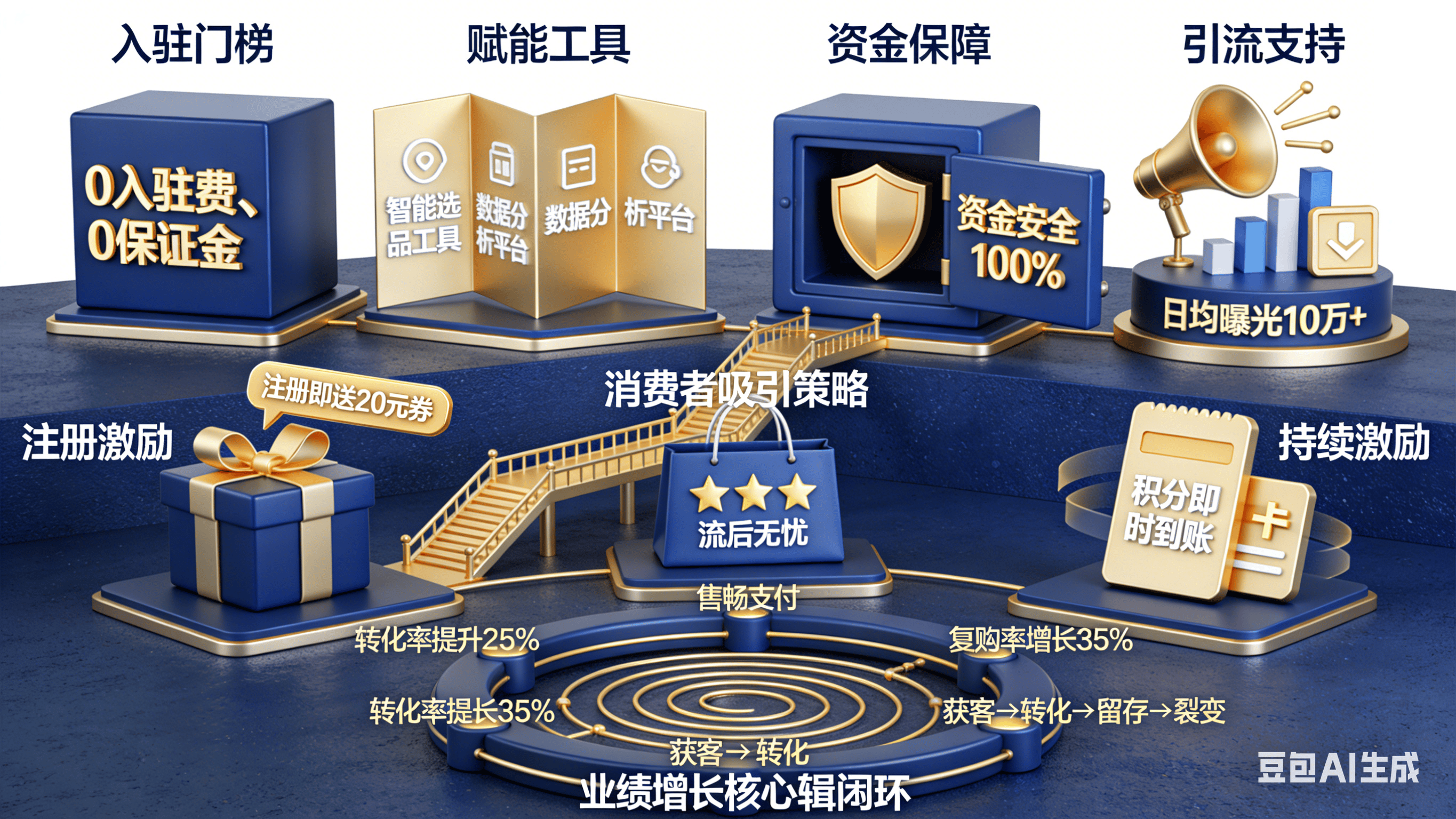 3.2 商家吸引策略:低门槛+高赋能+强保障