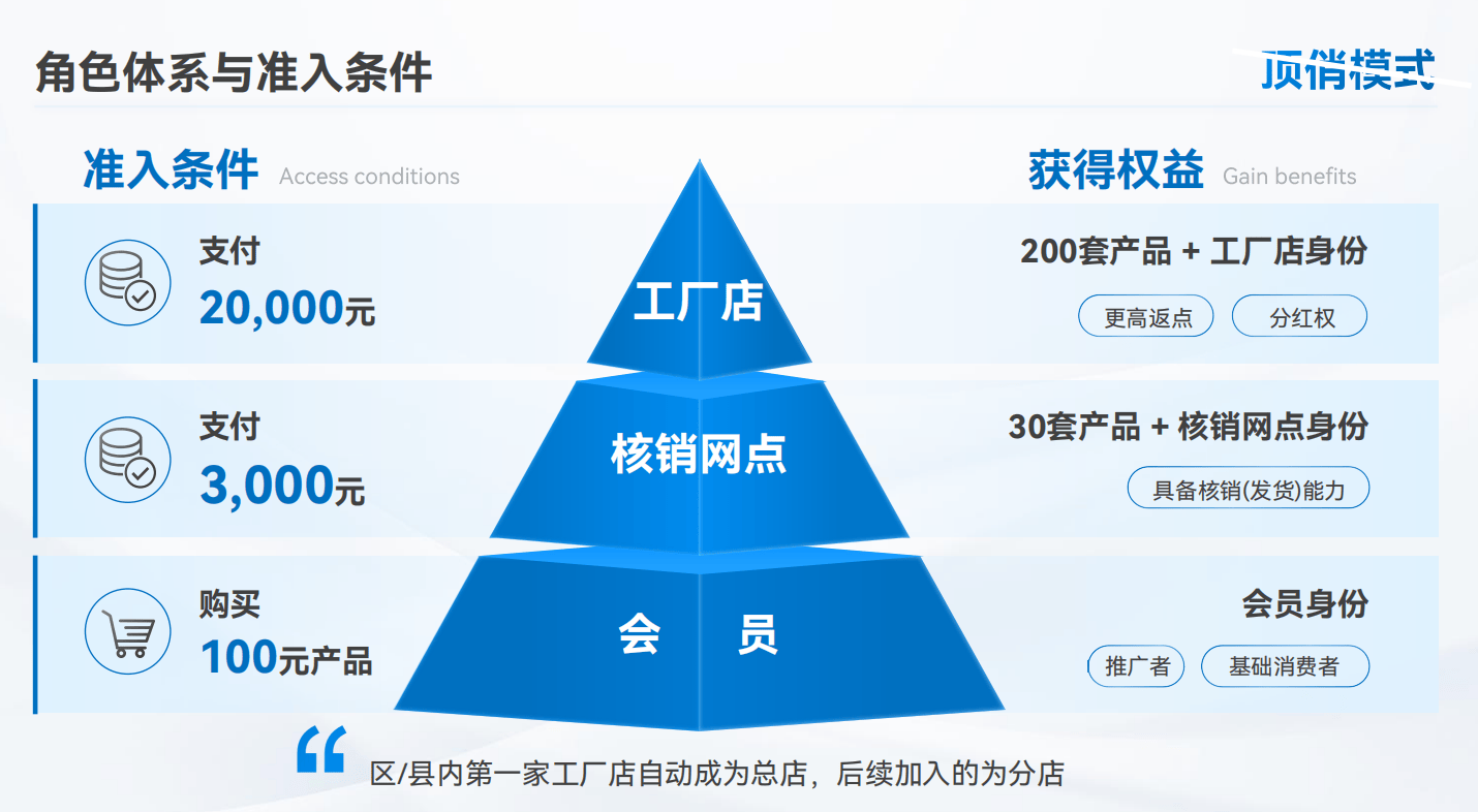模式搭建了清晰的三级角色体系,各角色准入门槛明确、权责对应,形成分层运营、协同发力的格局: