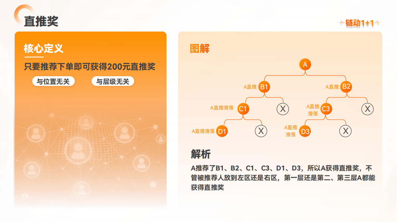 1. 自主直推:会员自身直接推荐一位新参与者加入;