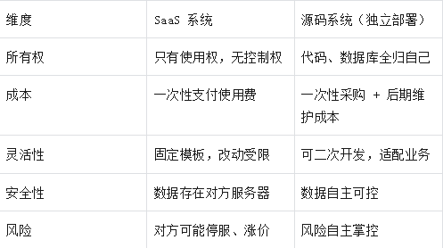 SaaS是租来的房子,能住但不能装修、不能扩建,也没法决定未来;源码是你买下的地,怎么建、怎么扩,全由你说了算。