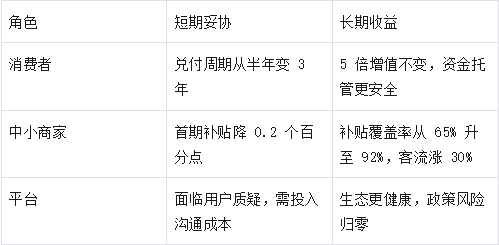 “” 之前40 期的模式,相当于 “每月要还 10 万房贷”;现在 120 期,变成 “每月还 3 万”,资金压力直接减70%。平台负责人在商家会上直言:“把补贴摊到 3-5 年发,才能避免‘今天风光、明天跑路’。”