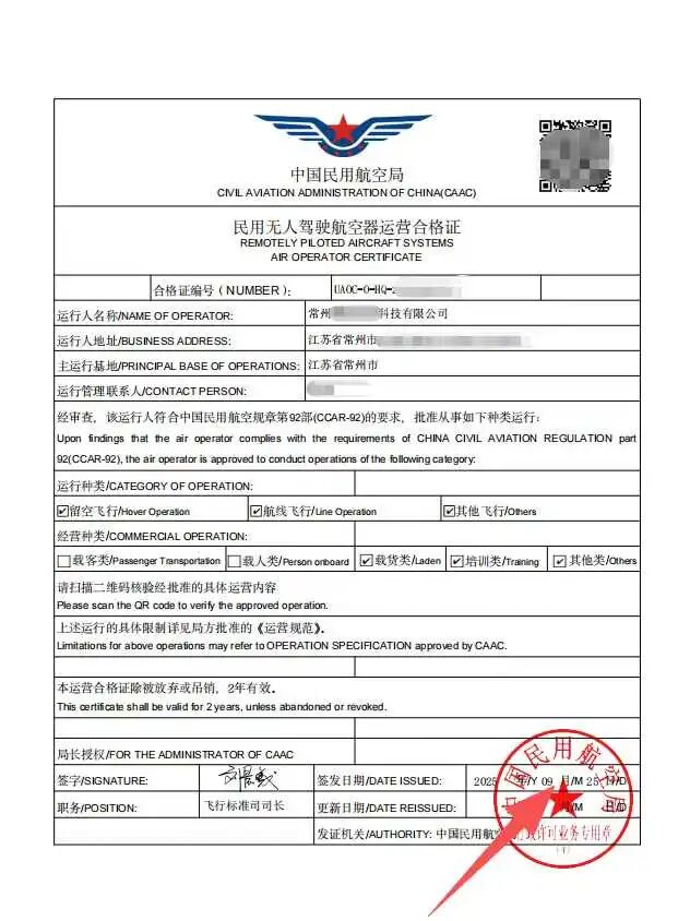 营业执照扫描件: 经营范围需包含无人机相关业务(如通用航空服务、测绘服务、技术开发等),且注册地真实有效。