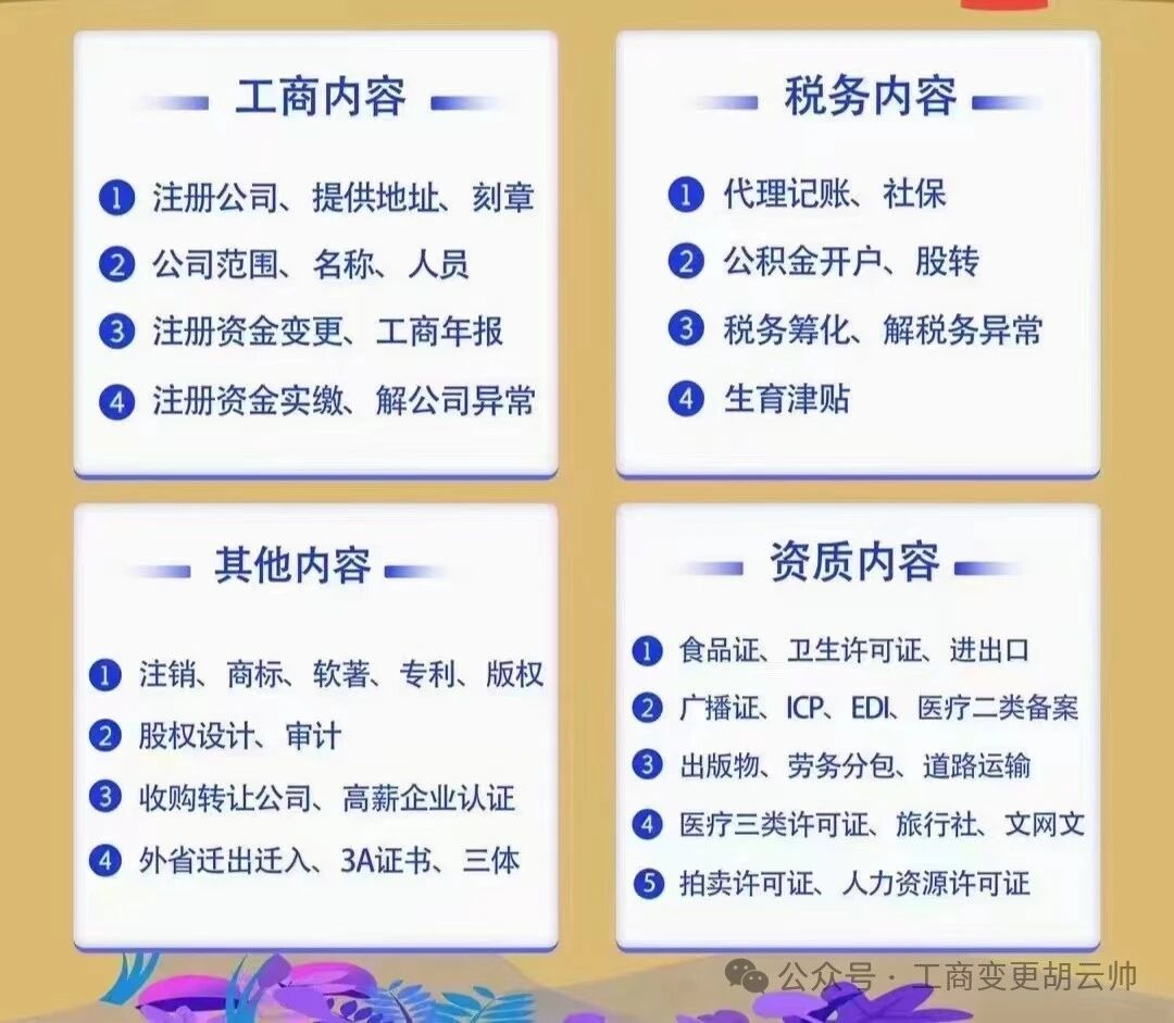 变更手续:由专业团队全程代办,包括工商变更、税务变更、银行变更等,确保流程顺利、快速完成