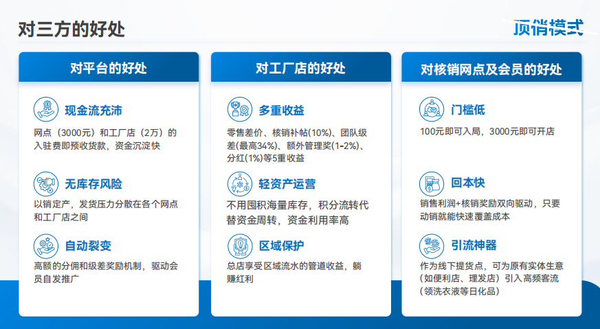 顶俏的商业模式并不复杂,其核心是将传统的纷销渠道进行数字化重构,设置了三个清晰的参与层级: