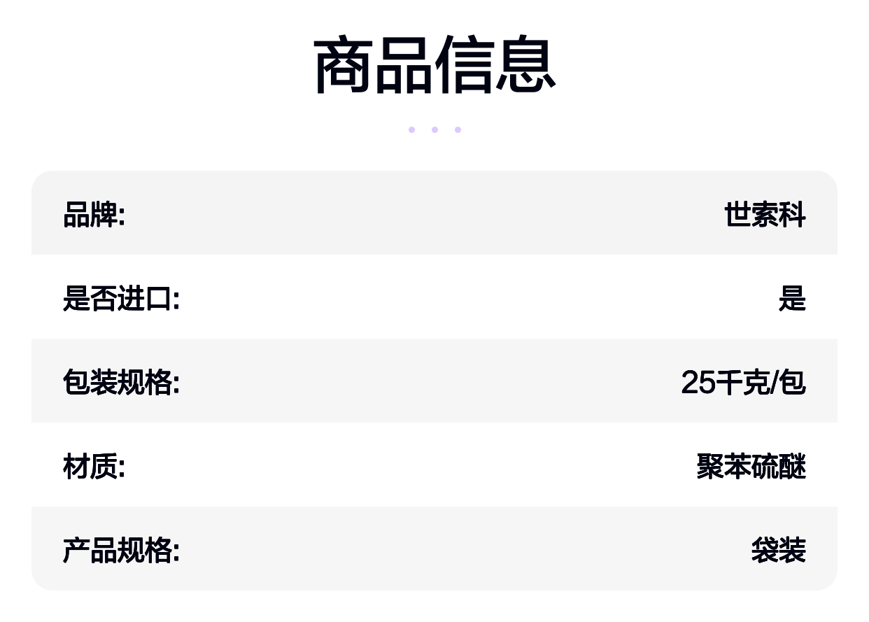 世索科RYTON® PPSR-4-242BL是一种强化聚苯硫醚,添加了40%的玻璃纤维,使得材料在多项性能上得到了显著提升。以下是该材料的核心特性:
