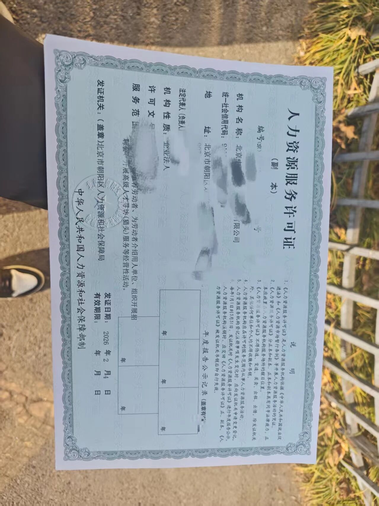 营业执照副本复印件(经营范围需包含“人力资源服务”);