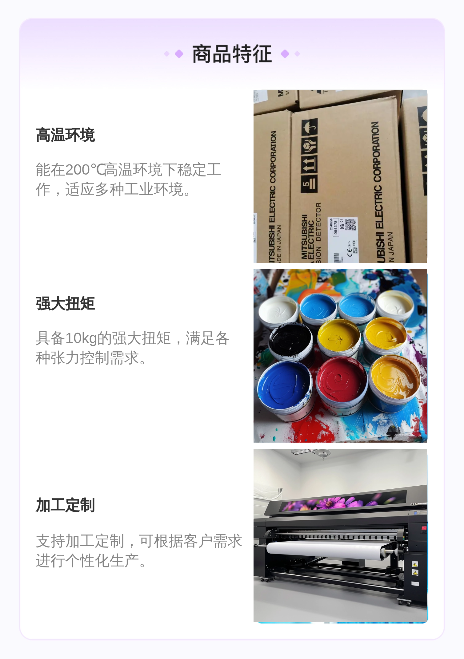 该公司具有专业的技术团队,能够为用户提供全方位的技术支持。无论是产品的安装调试、操作培训还是售后维修,技术团队都能够及时响应,确保用户在使用过程中遇到的问题得到及时解决。公司还注重产品的质量控制,严格按照guojibiaozhun进行生产和检测,保证每一台三菱LM系列张力控制系统都符合高品质的要求。