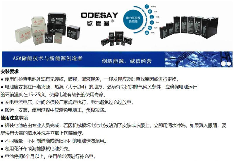 ODESAY欧德塞蓄电池DSY12240 绿色环保储能型 紧急逃生系统应急电源