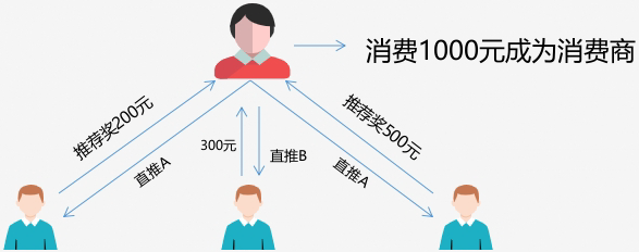 用户消费1000元产品即可成为消费商