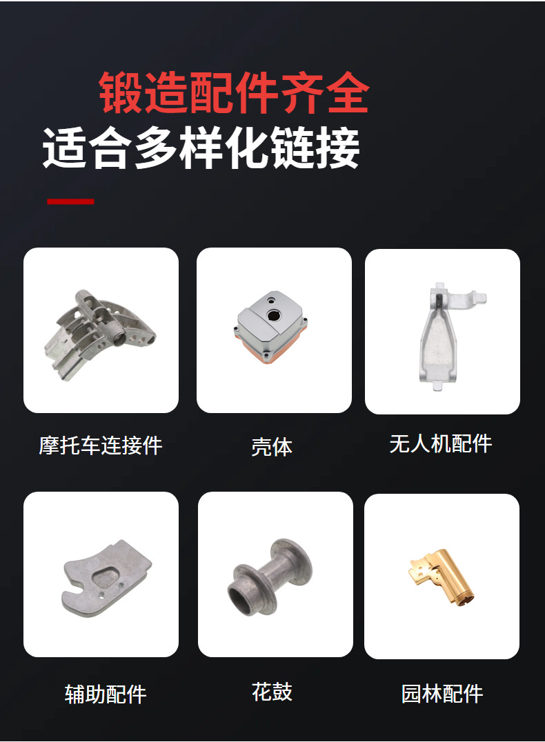 在摩托车产业高度成熟的今天,整车性能的跃升已不单依赖发动机调校或电控系统迭代,而愈发取决于关键结构件的材料强度、尺寸精度与服役可靠性。这些隐藏于车架接点、悬挂支座、制动卡钳基体、离合器拨叉等部位的五金部件,看似微小,实则承担着动态载荷传递、应力集中缓冲与长期疲劳耐受三重使命。其制造工艺若停留在传统冷冲压或简易铸造层面,极易在高频振动与瞬时冲击下出现微裂纹扩展、配合间隙漂移甚至突发性断裂——这正是许多中高端改装车与竞技车型严选热锻造供应商的根本动因。